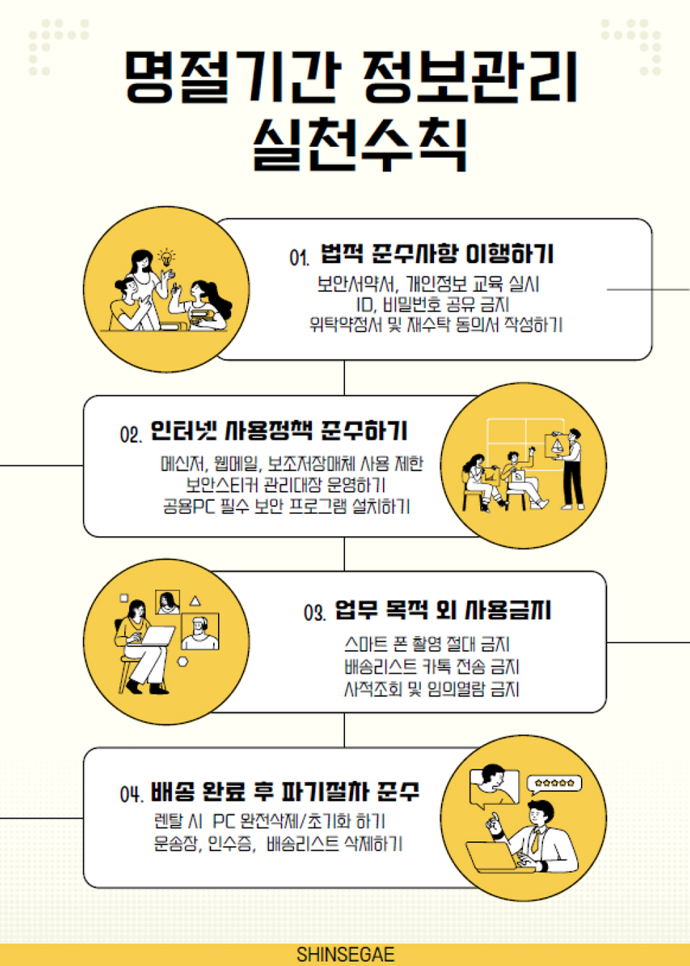 ① 서비스 이용에 따라 취득한 개인정보를 제 3자에게 제공하는 등 외부에 유출할 수 없으며, 관련 법령 등에 따라 철저히 보호하여야 합니다.